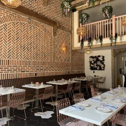 I have had this place on my list for years and finally had the chance to try it! We went early for dinner, around 5pm, and were able to be seated immediately. Food: I ordered the Merremaniche Boscaiola, which consists of rigatoni, mushroom, onion, english peas, italian sausage, and I chose to add pink sauce (which, is no extra charge now!). The pasta itself tasted fresh and was chewy, although a little underdone for my preference. The flavor of the pink sauce itself (a mix between tomato sauce and cream sauce) was delightful, and ever so subtly sweet. I enjoyed the Italian sausage, though it also tasted semi-sweet, almost like chicken apple sausage. Overall, there were enough interesting flavors in this that I would happily order this again. 8/10 We also had the Tartufata, a truffle pizza with fior di latte, wild mushrooms, and black truffle cream. This was far too oily, salty, and cheesy for my liking. The truffle flavor was overpowering, I had a slice and that was enough for me. 4/10 Service: Attentive and kind, taking any empty plates away quickly. Ambiance: Aesthetically, it's very beautiful in here. plenty of floral accents (pictured), with some rustic features (exposed brick walls, wooden ceilings). Plenty of seating. It is, however, quite loud.